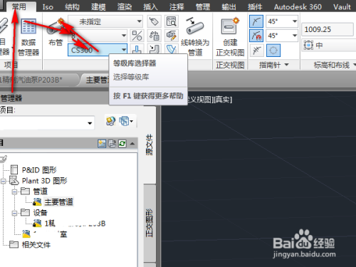 接下来就是绘制管道了,点击常用——选择管道尺寸——选择管道压力品级——点击布管。
