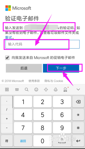 打开本身的邮箱,然后在手机上输入方才邮箱收到的阿谁验证码,然后点击【下一步】。