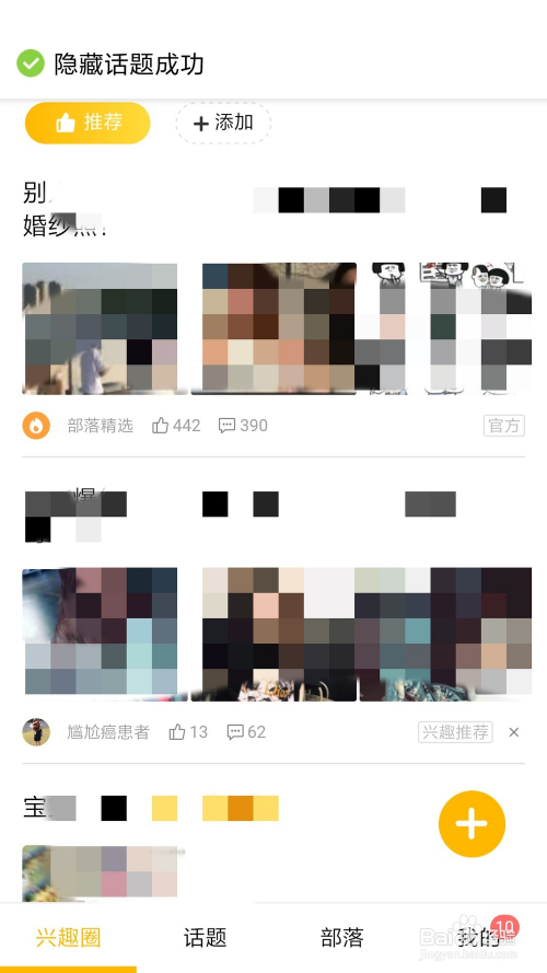 [第六步] 返回界面今后,我们可以看到该话题已当作功打消,不会再呈现在你的乐趣圈里面了,如许就当作功埋没了你不感乐趣的乐趣圈话题