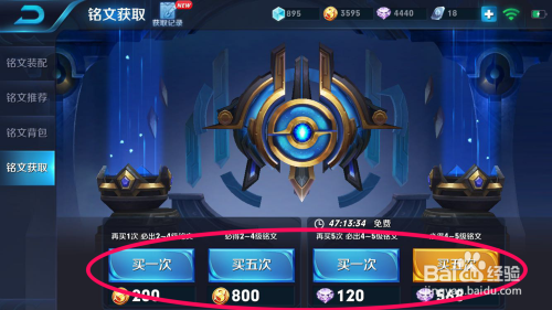 游戏金币跟钻石都可以抽取铭文。