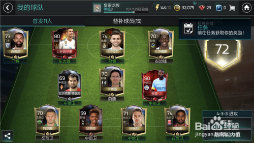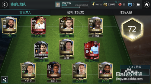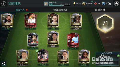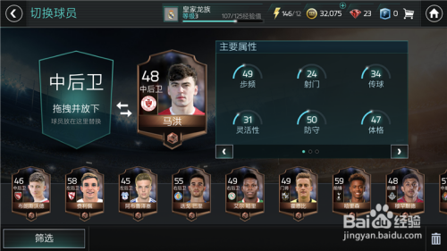 点击之后,选择替代,然后就会进入到我们的替补名单傍边,首先替代我们位置不合错误的球员,那样即便能力高也没用。