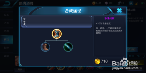 接下来第二件装备我们选择出急速战靴,这件装备也可以提高其攻速,并且提高其灵活性。