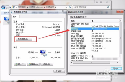 然后在当地毗连状况窗口中点击具体信息按钮,就会弹出收集毗连的具体信息了窗口了,在具体信息窗口中我们就可以看到你正在利用的电脑的mac物理地址了,是一串12位的数字和字母夹杂地址。