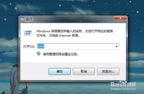 然后在运行窗口中输入cmd指令,点击确定打开系统号令执行法式。