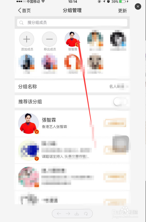 6、打开分组办理就可以看到存眷的人了,找到要查找的人。