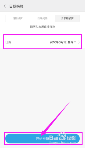 确定我们要推送的日期后,点击【起头推算】,就会主动推算出我们要知道的信息,具体如图(我们可以看到具体的日期和节日等信息)。