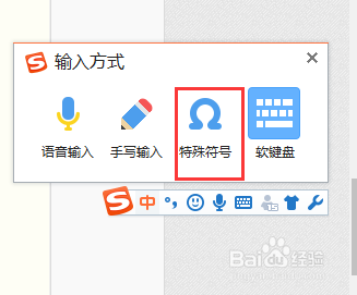 在出来的输入体例下边单击【特别符号】。