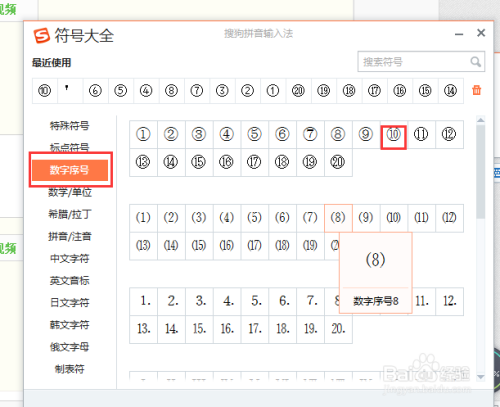 在出来的符号年夜全里,选择左侧的【数字序号】,然后在右侧找到想要的圆圈序号就行。(这种体例不受字体字号的影响)