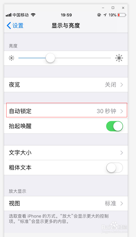 然后我们再返回3步调的页面,就会发现苹果iPhone 6s设置锁屏时候,30秒主动锁屏已经设置好了。