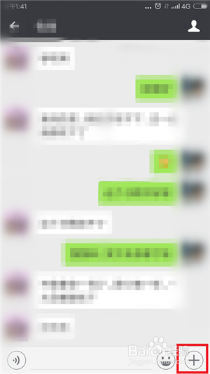 在聊天界面的下方点击【+】按钮。