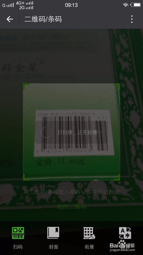 第二个功能就是扫封面。若是你看到了一本书,感觉很好,想在网上看看价钱,就只需将手机瞄准这本书的封面,将封面放在手机中心的方框里,扫描之后就会呈现这本书在网上的信息。