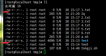 小编是在 /tmp 目次下测试的; ll 号令可以看到文件的类型和所有文件;(linux的文件类型 需要大师把握)