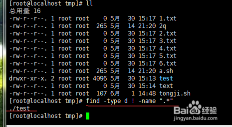 find -name “ ”,这个号令可以指命名字来查找;连系 -type,呈现 find -type ! -name “.*”,如许就可以只查找 显示的文件;如图二;