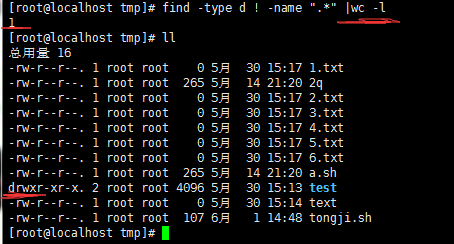 然后经由过程管道符 “|”连系 wc(可以统计) 这个号令,可以直接统计出目次个数;