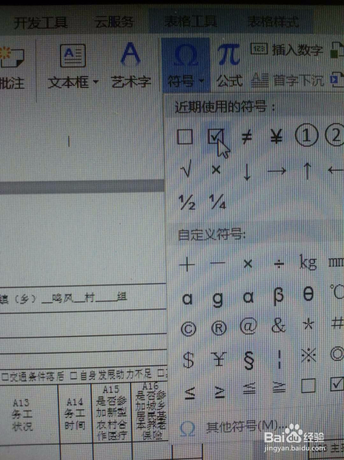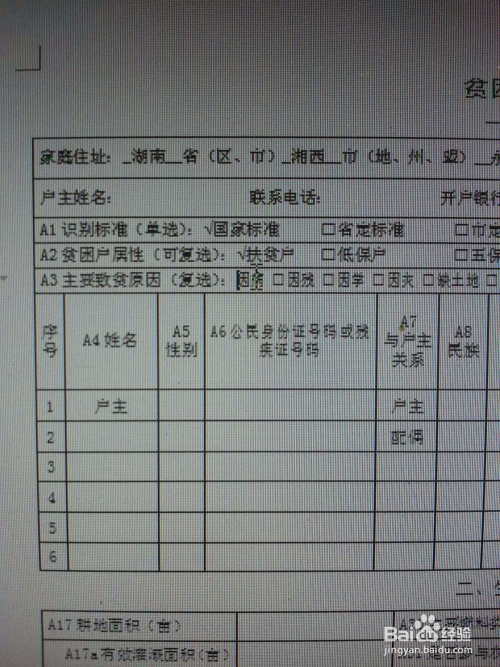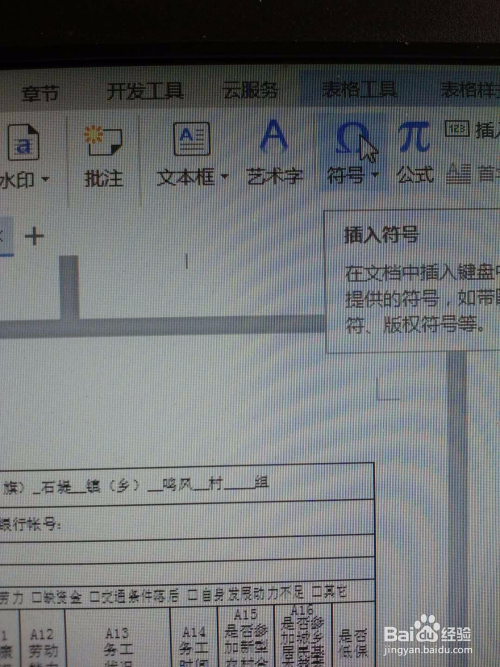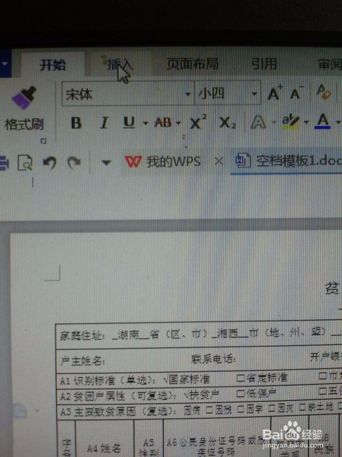 一,按照表格要求利用“插入”方式。例如下表要填的致贫原因是因病。