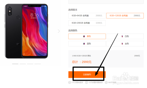进入小米8的介绍页面,点击右上角的【当即采办】