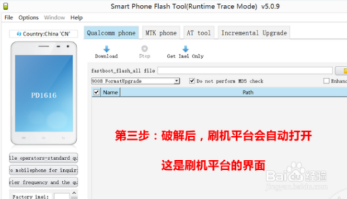 打开刷机平台,在弹出的界面中选择一件破解按钮,起头进行破解操作,破解后,刷机平台会主动打开。下面第二张图片就是刷机平台界面