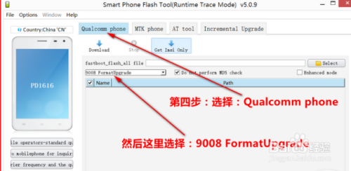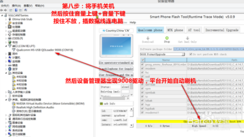 选择刷机模式为9008模式,然后选择机包,选择好了之跋文住点击下载按钮起头下载,如图所示,先选择9008,然后点击Qualcom phone