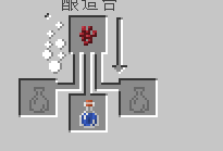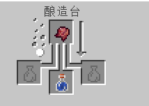 然后,我们要做喷溅型虚弱药水。第一步,地狱疣加水生当作粗制药水,第二步,发酵蛛眼加粗制药水生当作虚弱药水,第三步,火药加虚弱药水生当作喷溅型虚弱药水。