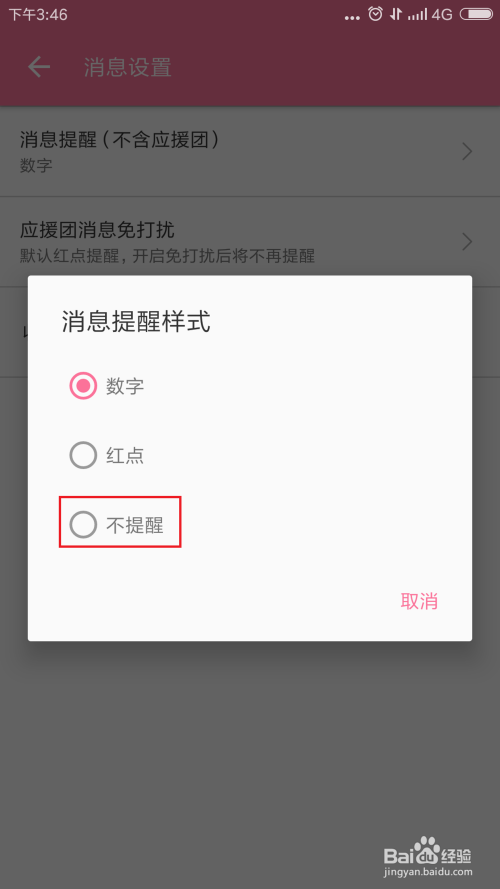 接下来会呈现动静提醒的样式选择,若是不但愿接收到动静点击【不提醒】。