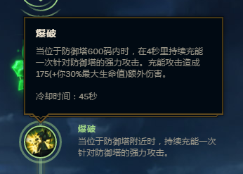 下面有两个选择,‘爆破’更轻易在打出优势是推塔;‘生命源泉’可以 共同E进行 下路追击,零丁对线 同样可以,看小我爱好了;