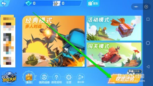由微信小法式,进行搜刮欢喜坦克游戏。点击进入游戏的界面,在游戏界面点击快速进房。