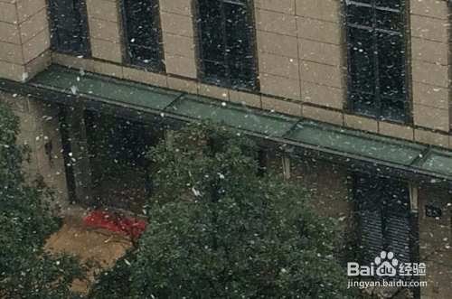 用手机拍飘雪时,也可以选择室内靠玻璃窗做布景,站在阳台的另一端,对着拉上窗帘的窗户进行摄影,拍出的飘雪景色也是挺都雅的。