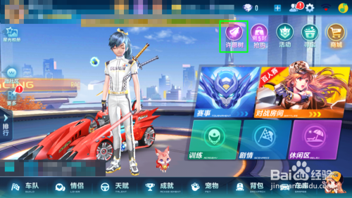 首先,这辆车今朝只能经由过程活动获得,大师进入游戏之后,先点击此中的‘许愿树’。