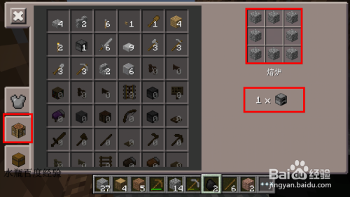 也是本家儿要东西台辅助的。首先挖够岩石,做一个熔炼炉(良多处所都用获得)。