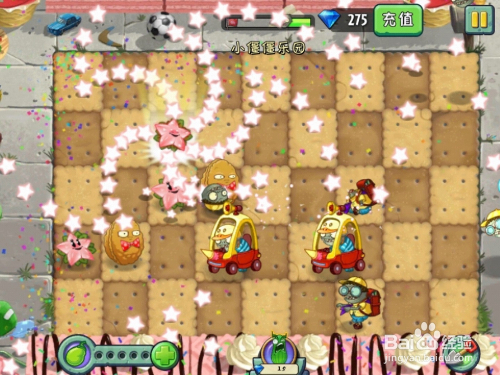 第二关的本家儿要进犯植物是天使星星果,只要在后面依次种上天使星星果,然后利用坚果阻拦僵尸进攻,注重利用脉冲黄桃阻拦僵尸车的进攻。
