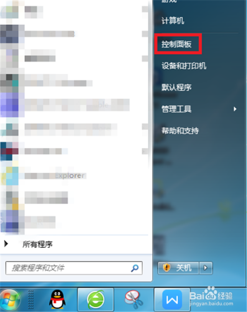 找到电脑左下角的起头图标按钮并点击,在呈现的选项中点击【节制面板】。