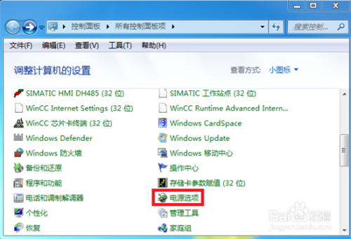 在节制面板界面中找到【电源选项】并设置。