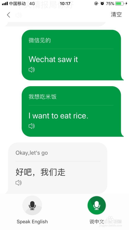 第一个功能很适合大师去国外,面临面和外国人交流,我们问话的时辰点击说中文,然后翻译英语,放给外国人听,他听完筹办讲话的时辰,我们再点左下角的说英语,把他的翻译当作中文,我们就可以看懂了。