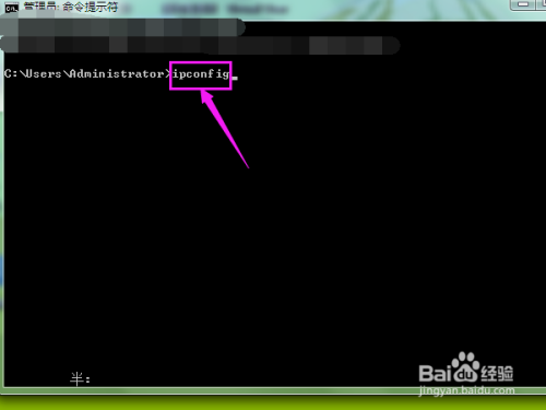 输入【ipconfig】,然后按键盘enter键。