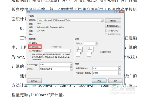 若是是想打印指定的某一页,那就找到该页,把光标放到该页上,单击【当前页】前边的小图标,再点击右下角的【确定】,就打出屏幕当前看到的那一页了。