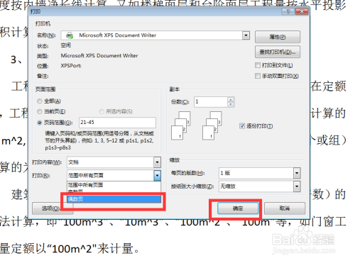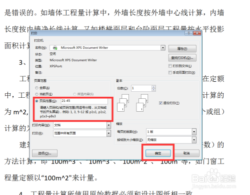 若是想打第21—45页,这种页数比力多的环境。单页打固然可行,可是也费时候。可以单击【页码规模】前边的小圆圈,然后按照下边的提醒输入21-45,再点击右下角的【确定】就好了。