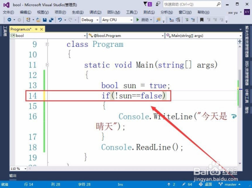 可以看到,该法式中if语句的表达式是sun==true,如许写是不规范的,因为sun是一个布尔型数据。