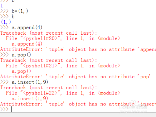 因为tuple不克不及点窜,所以它没有list的.append() .pop() .insert() 等属性。