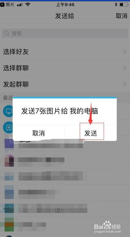 发送完毕,显示已发送,适才选中的图片就当作功上传到电脑。