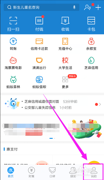进入付出宝页面,点击右下角的“我的”,如图所示