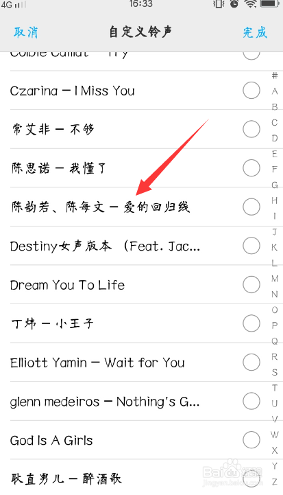 找到本身手机下载的歌曲,选中要设为铃声的歌曲。