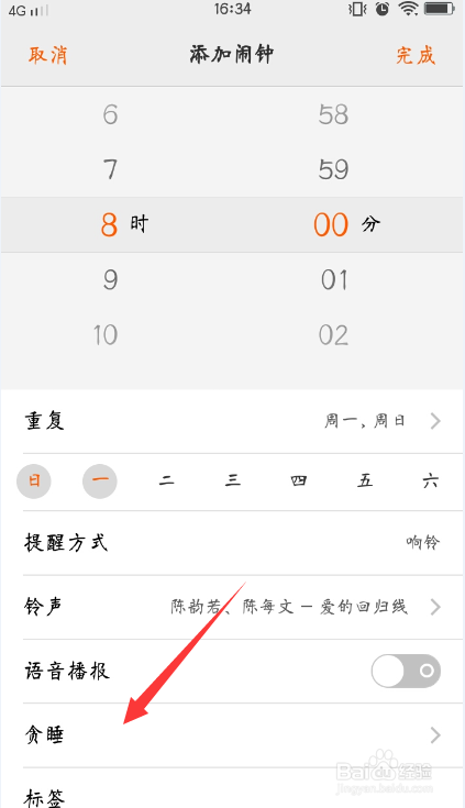 点击进入贪睡时候,进行设置就可以了。