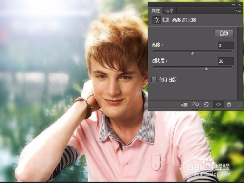 单击“建立新的填充或调整图层”按钮,选择“亮度/对比度”选项,在弹出的调整面板中设置参数。