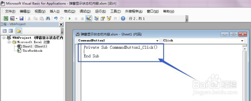 封闭VBA窗口,回到Excel窗口界面,单击按钮即可弹出显示状况栏内容。