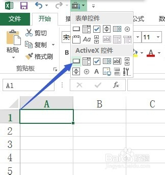 插入一个ActiveX控件,本教程以号令按钮控件为例。