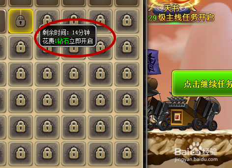 这时可以看到一个倒计时,时候竣事后,锁子就会亮起,点击就可以增添仓库大小。当然可以直接利用钻石,增添仓库大小,如图所示。