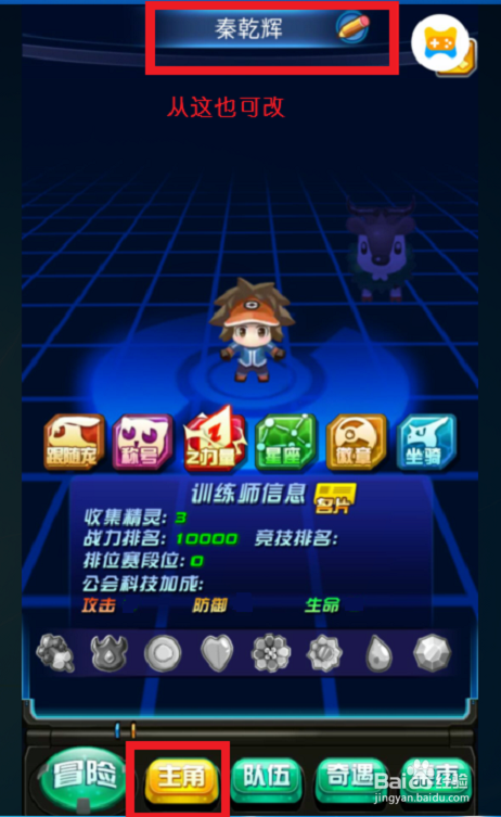 若从下侧的‘本家儿角’字钮点开,在浮现的画面上方,从这亦可改,还能看到所携的随宠。