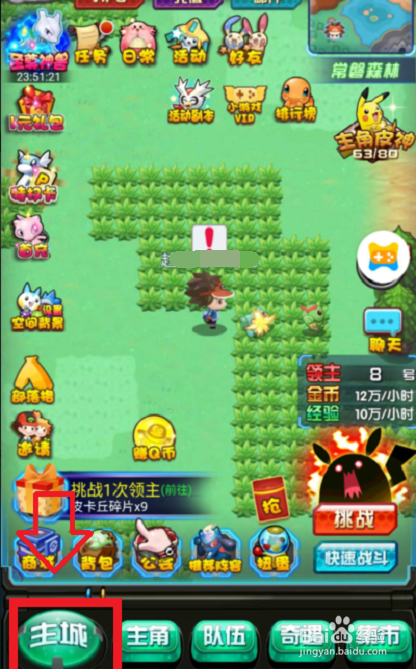 首步进入‘口袋魔鬼’本家儿框景界面中,在底部‘本家儿城’的绿色标钮处按入,或是直接点开脚色框。