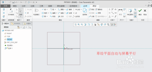 设置完当作,草绘时草绘平面主动与屏幕平行。