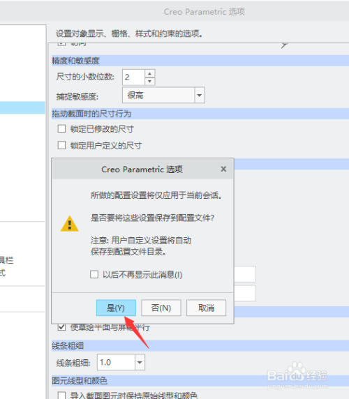 单击”Creo Parametric 选项“对话框中的”确定“。